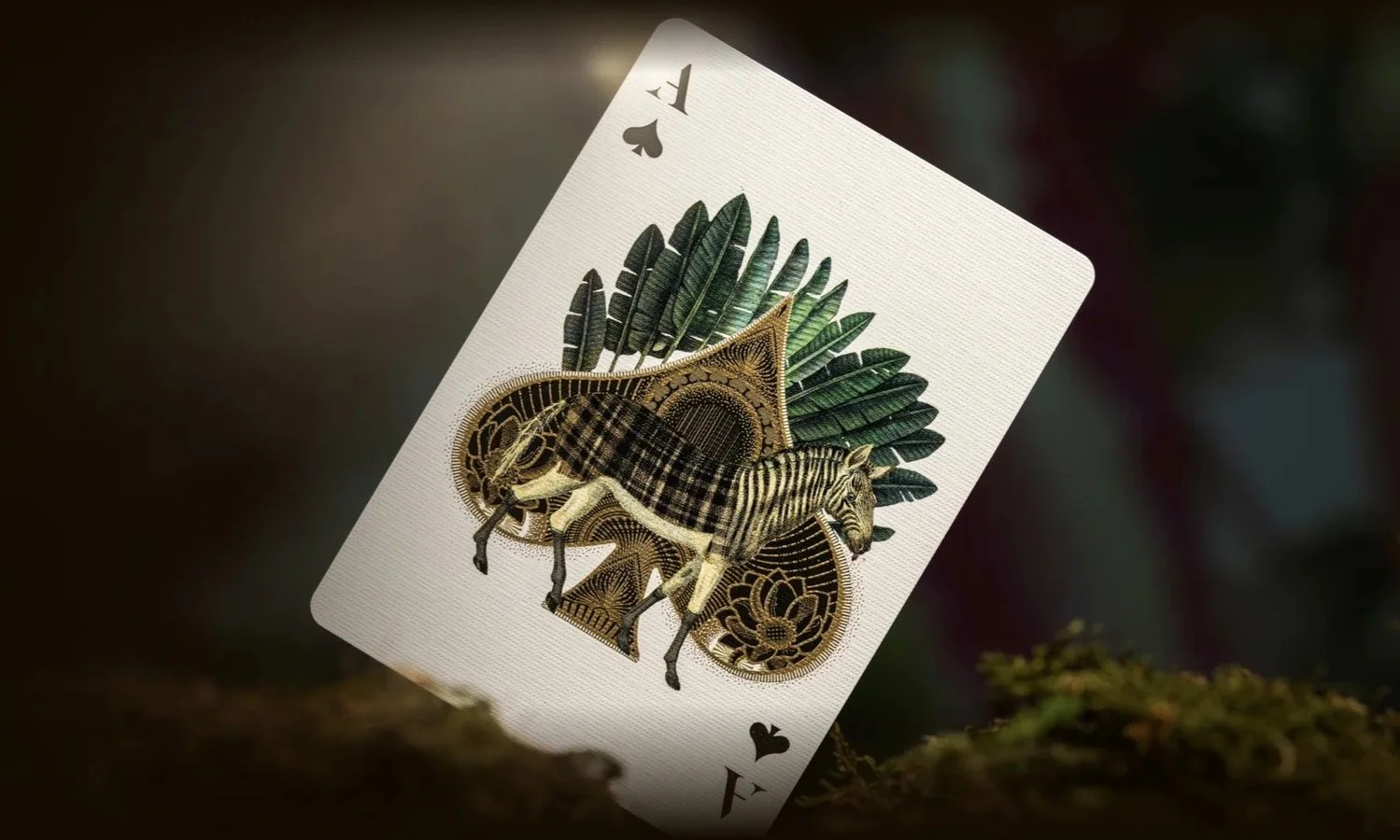 The design extends to the beautifully crafted tuck box packaging, which showcases a rich and intricate Menagerie pattern and elegant gold typography. Whether you're an avid card player or a collector of unique designs, the Extinct Animals Playing Cards are sure to enchant and inspire.