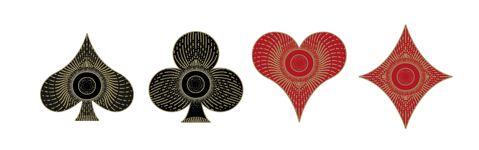 The project began by developing a conceptual story for each face card animal family and designing all systemic design assets, such as the pip icons and characteristic illustration elements. The animal shapes were drawn based on Moooi's iconic extinct animal collections.